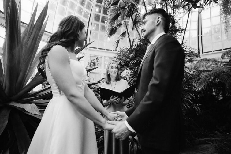 Raquel and Tyler tied the knot during a intimate wedding ceremony shared with their close family members. This small wedding took place at the W.W Seymour Conservatory located in Wright Park in Tacoma, WA in the Spring of 2025. We opted to shoot this event with a hybrid setup, meaning a mix of digital photos and a mix of film photos. I brought along some of my favorite analog film cameras including the Contax G1 rangefinder and the Mamiya C220 TLR. I think we came away with some stunning images that really captured the vibe of the day. I love working on small events like this, very little agenda, just pure magic. Film exposes differently and reacts differently to light than digital, so even the same settings on the cameras can produce different results. I like the soft, rich and textured feel of film and love to shoot it when it makes sense for the event.