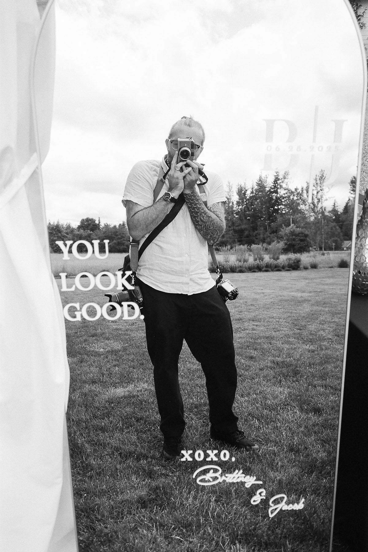 I shot this wedding on Digital and Analog Film – opting for a mix of 35mm color and black and white film stocks. This was my first wedding gig using a mirrorless camera, the Nikon Zf and it handled the task beautiful – excellent colors from that camera with lightning fast autofocus, a perfect compliment to my film setup. For 35mm film I shot using a Contax G1 rangefinder and a Nikon F100.